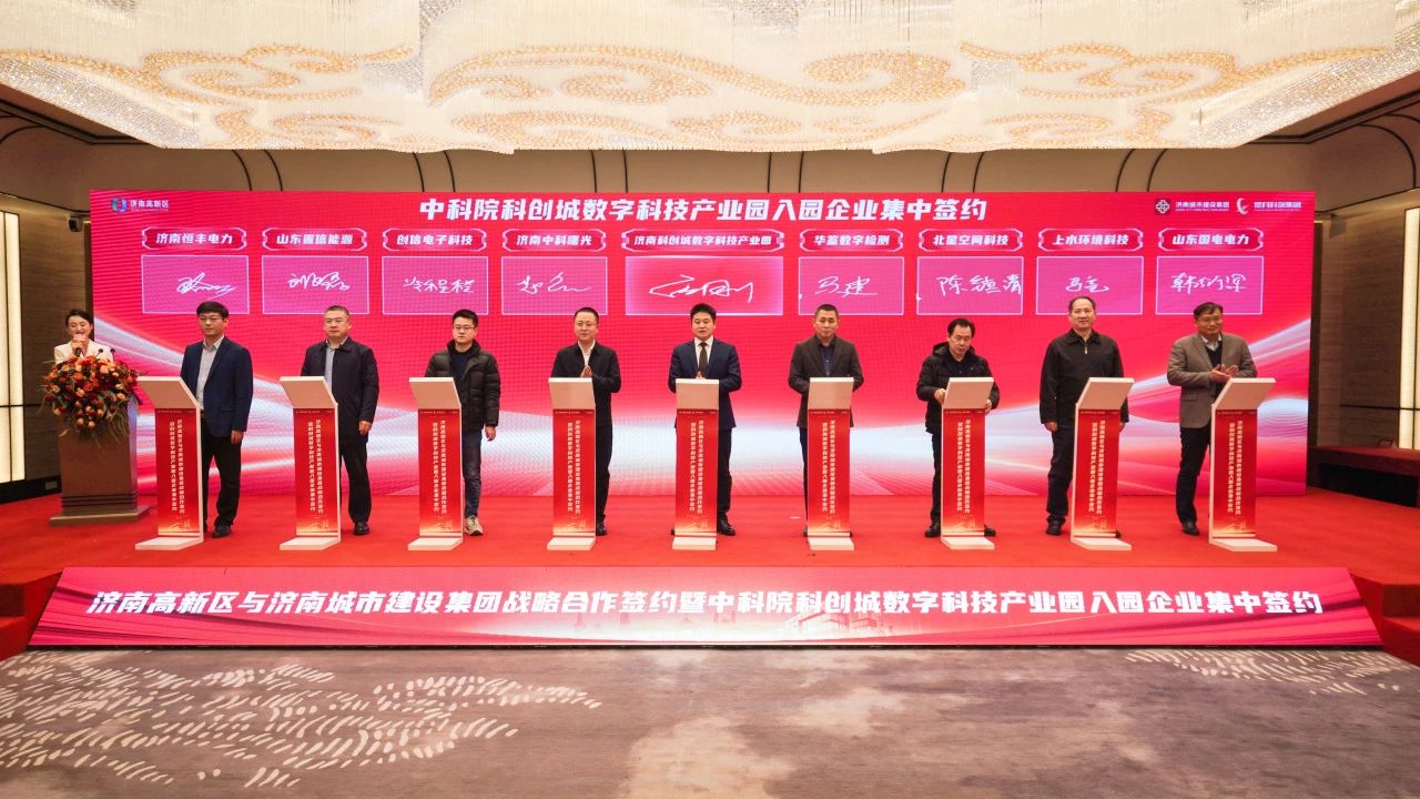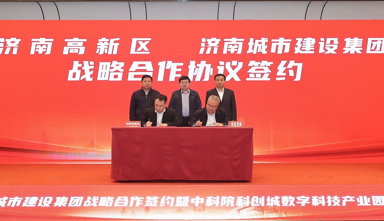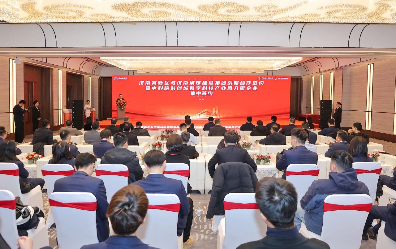 12月25日,濟南高新區與濟南城市建設集團舉行戰略合作簽約暨中科院科創城數字科技產業園入園企業集中簽約活動。濟南市副市長,高新區黨工委副書記、管委會常務副主任任廣鋒出席活動并見證簽約。市科技局黨組書記、局長黃波,濟南高新區管委會副主任、濟高科創投資集團董事長兼總經理劉松,濟南城市建設集團黨委副書記、總經理楊峰,建設集團副總經理徐文東參加活動。