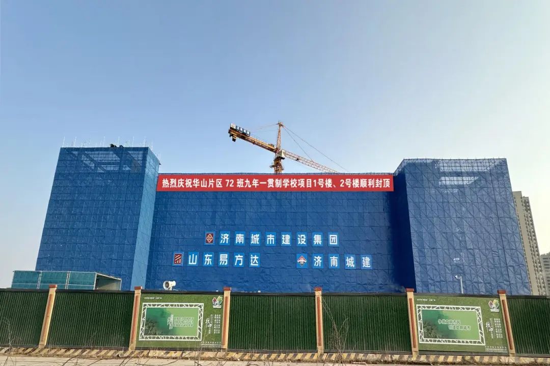華山片區72班九年一貫制學校項目1號樓、2號樓順利封頂