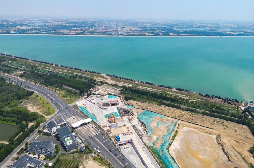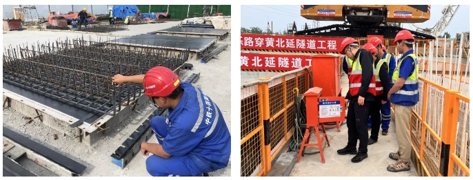 濟濼路穿黃北延隧道工程起自黃河隧道敞開段,通過兩臺4000噸重、直徑為15.76米的盾構機以隧道方式下穿邯濟鐵路、鵲山水庫后,以明挖暗埋方式下穿石濟客專及邯膠聯絡線,過科學城南邊界路后出地面,繼續向北直至國道G308(北延工程終點)。采用雙管雙層隧道,雙向六車道公鐵合建方案,管片外徑15.2米,項目全長4.38公里,其中隧道總長度3.23公里(含盾構段2.05公里)。上層道路采用城市主干路標準,雙向六車道,設計速度60公里/小時。下層軌道交通采用市域鐵路標準,設計速度100公里/小時。