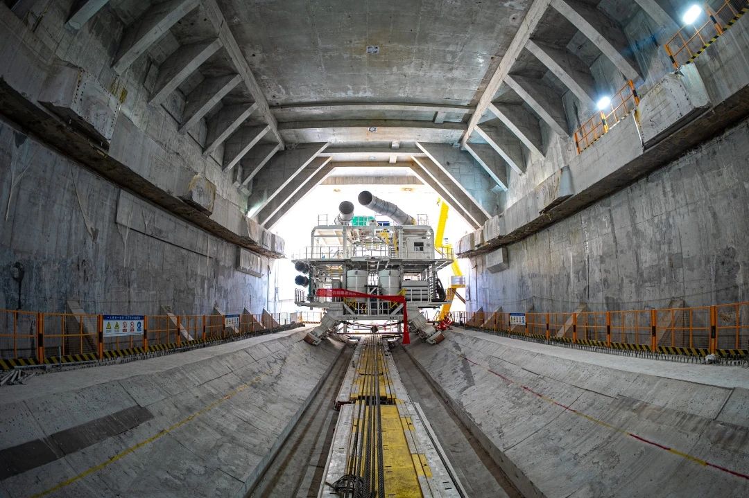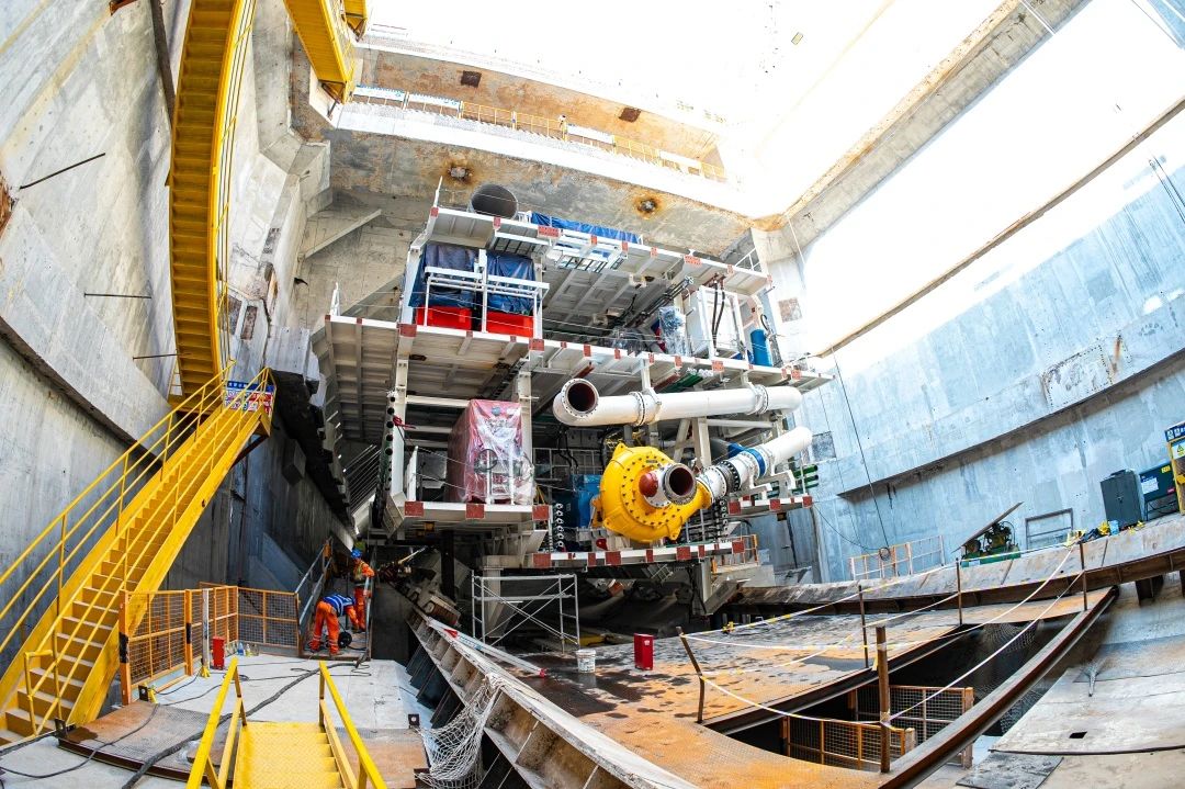 負(fù)責(zé)盾構(gòu)施工的“山河號”泥水平衡盾構(gòu)機,最大開挖直徑達(dá)17.5米,相當(dāng)于6層樓的高度,盾構(gòu)機總長163米、重5200噸、裝機總功率12580千瓦。
