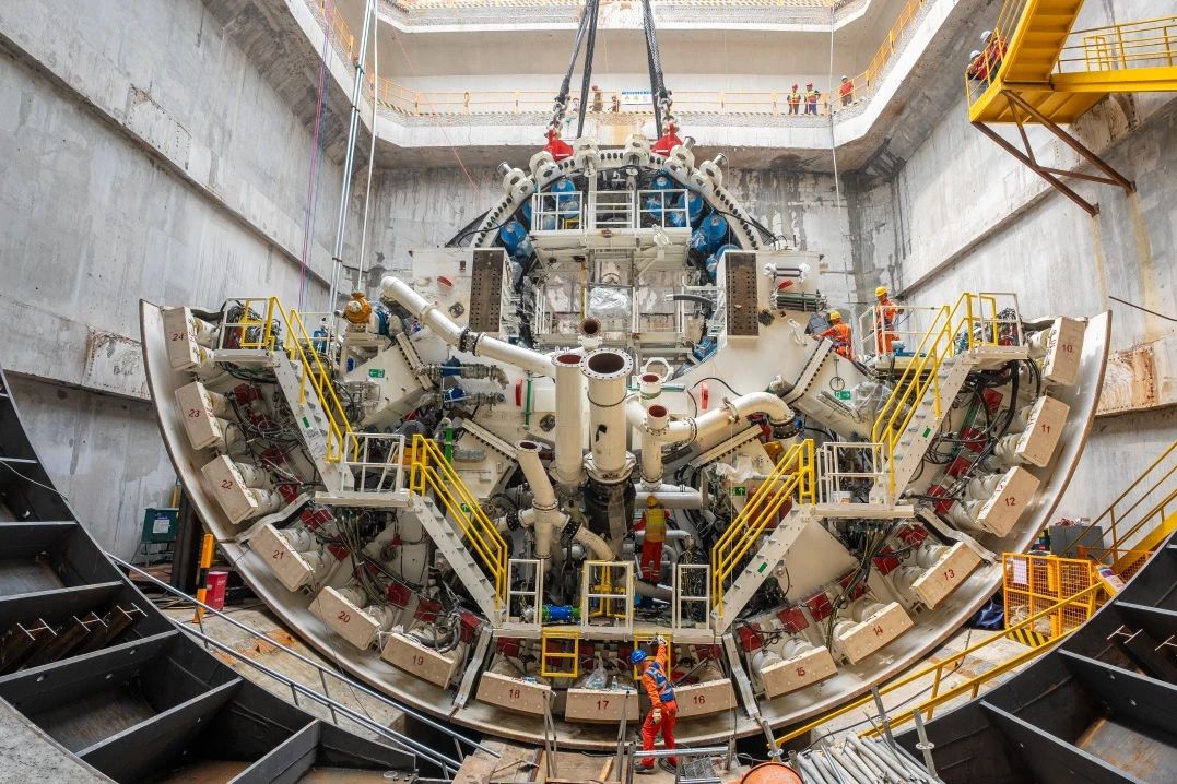 工程所采用的“山河號(hào)”盾構(gòu)機(jī),是世界在建最大直徑泥水平衡盾構(gòu)機(jī),最大開挖直徑17.5米,總長163米、重達(dá)5200噸、裝機(jī)總功率12580千瓦,裝配各類刀具306把,其中57把可實(shí)現(xiàn)滾刀齒刀互換,刀盤開口率53%,最大限度滿足掘進(jìn)所面對的復(fù)雜地層,盾構(gòu)機(jī)總裝達(dá)到世界先進(jìn)水平。