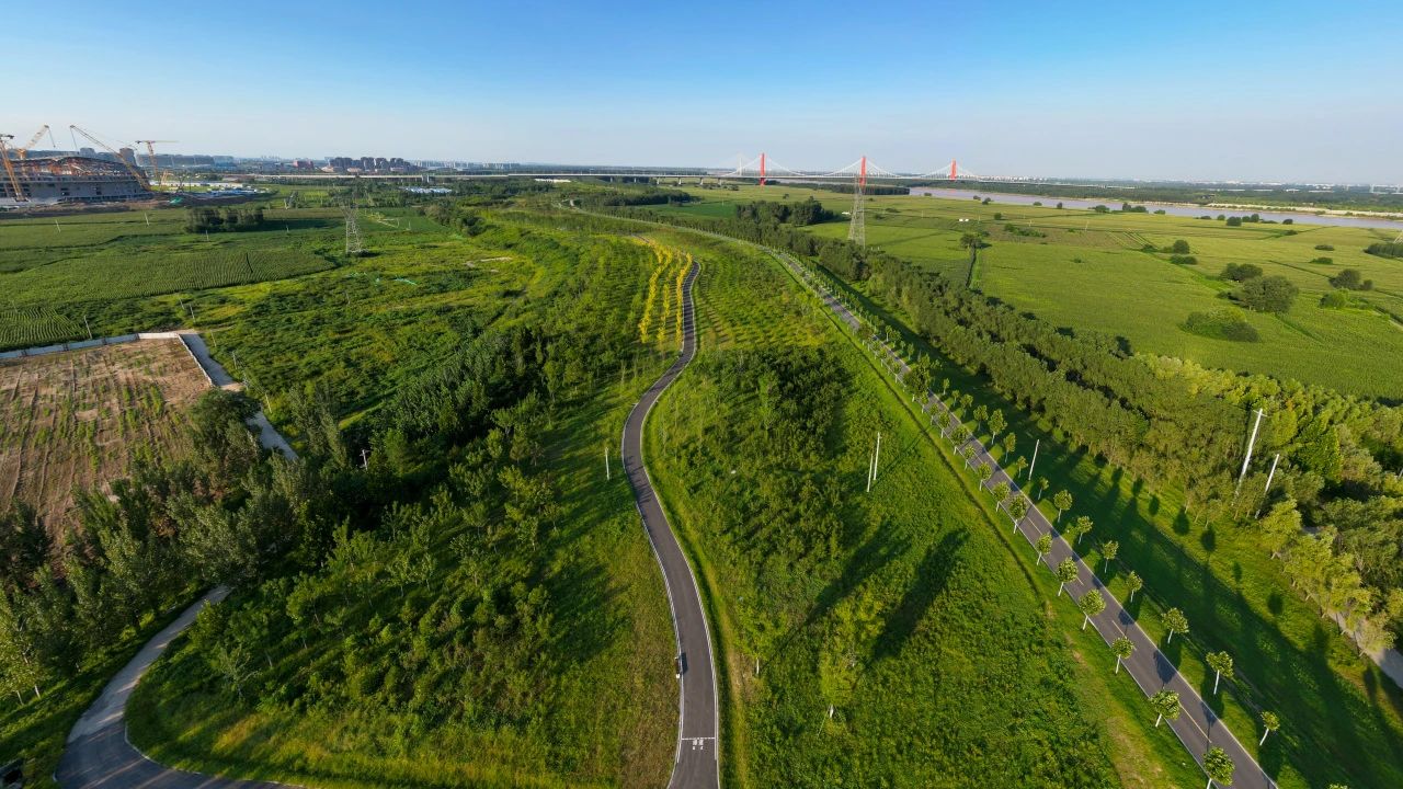 項目位于石濟黃河公鐵兩用橋至濟南黃河鳳凰大橋段黃河北岸淤背區內,實施范圍為堤頂路北側的水工建設用地,南北向約100m。項目西鄰崔寨片區,東臨堤頂路,與崔寨片區規劃路和灘區道路聯系緊密;北鄰黃河體育中心,為黃河沿岸重要的城市節點和起步區區域地標。項目施工總面積368695m²,主要建設內容為綠化苗木栽植,園路施工,景觀照明,公廁管理房,附屬設施等。