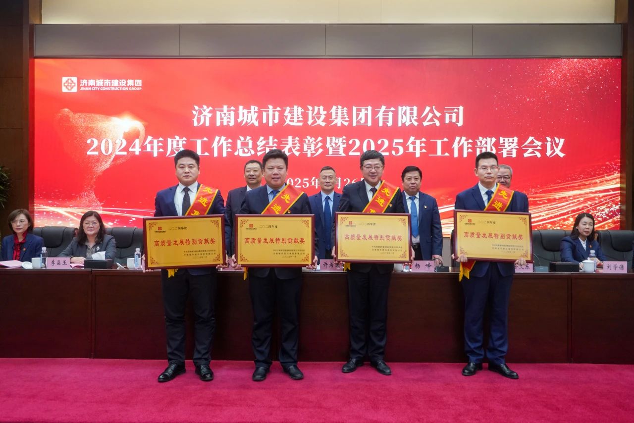 會議授予集團財務管理部、濟南城建集團有限公司、濟南金曰公路工程有限公司、山東貫月科創投資集團有限公司“高質量發展特別貢獻獎”,以表彰其在集團高質量發展中作出的突出貢獻。