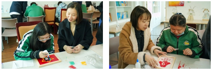 活動現場,志愿者們首先參觀了驛站設施,通過與殘疾人交流,深入了解殘疾人群體需求。在隨后的互動環節中,志愿者們與殘疾人共同觀看雷鋒故事短片,進一步弘揚新時代雷鋒精神,同時與殘疾人朋友分組合作,以大米、紅豆等糧食為材料,共同創作“雷鋒主題創意畫”。志愿者們耐心傾聽、細致協助,以實際行動踐行“奉獻、友愛、互助、進步”的志愿精神。