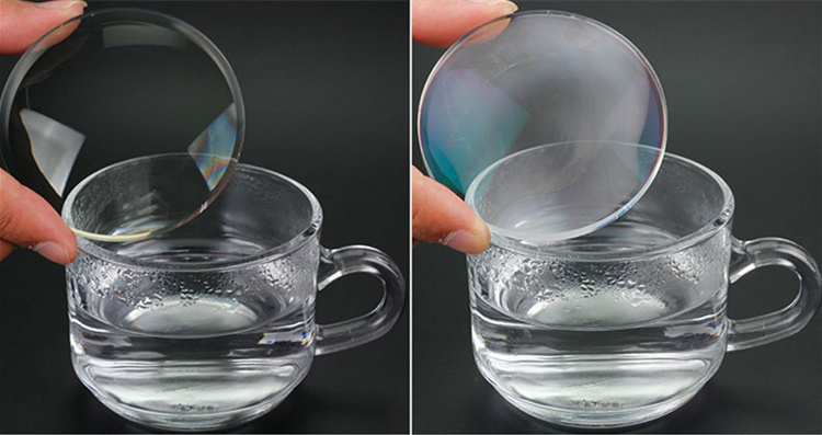 涂布防霧涂層的玻璃片(左側(cè))與未涂布涂層的玻璃片(右側(cè))的起霧效果對比