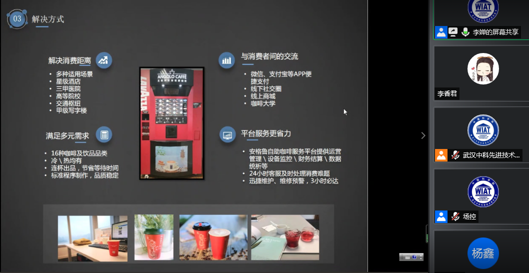 武漢淞文科技有限公司的“公租房系統智能化解決方案”、重慶小優美網絡科技有限公司的“安格魯無人咖啡吧”、南舟科技(武漢)有限公司的“基于先進人工智能技術的英語學習輔助系統”、重慶一七科技開發有限公司的“5G+XR集成解決方案”等7個項目進行了精彩路演。