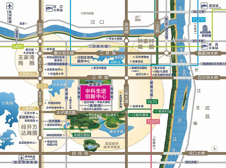 中科先進創新中心地處華中智谷一期F10棟,三環線與江城大道交匯處,毗鄰地鐵3號和6號線,30分鐘通達天河國際機場和武漢三大火車站,1小時貫聯武漢各大城市圈,附近有永旺夢樂城、武漢亞心醫院、碧桂園泰富城等大型配套設施,交通便利,工作生活一步到位。