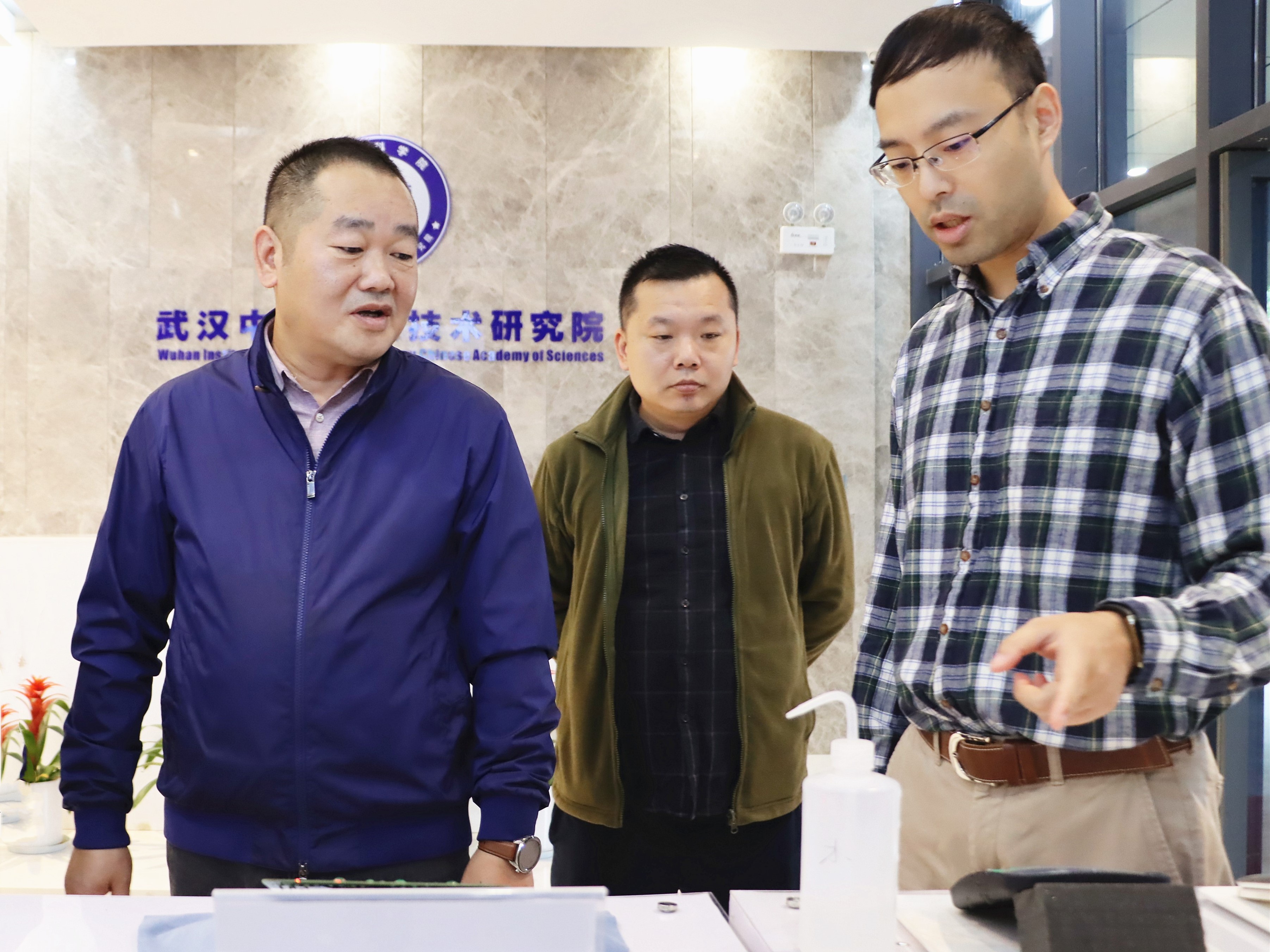 康翼鴻向王欣一行介紹了武漢先進院在智能微膠囊、黑磷、玄武巖纖維、超表面材料涂層等技術目前的科研進展以及產業化進程,在隨后的座談會上,雙方就合作項目技術層面要求、實驗室共建、合作模式、使用場景、產品優化和成本控制、發明專利、合作進程等方面進行磋商。