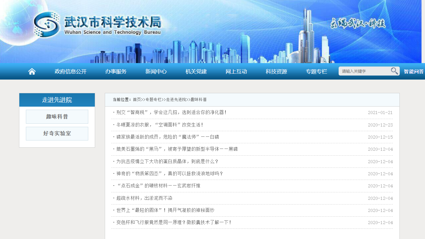 在市科技局官網首頁上