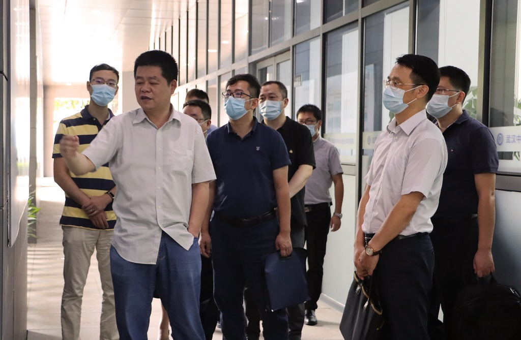 武漢開發區科經局局長吳芳、副局長王進,文發集團黨委委員、副總經理杜肇均,泓濤資產主管合伙人姚莉,武漢先進院副院長李尚鎔,副總經理馮魏巍,產業育成事業部總監肖山等參加調研。
