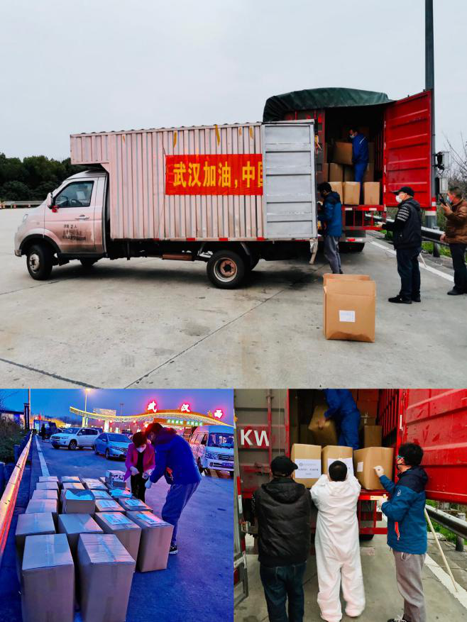 武漢先進院員工與物資合影