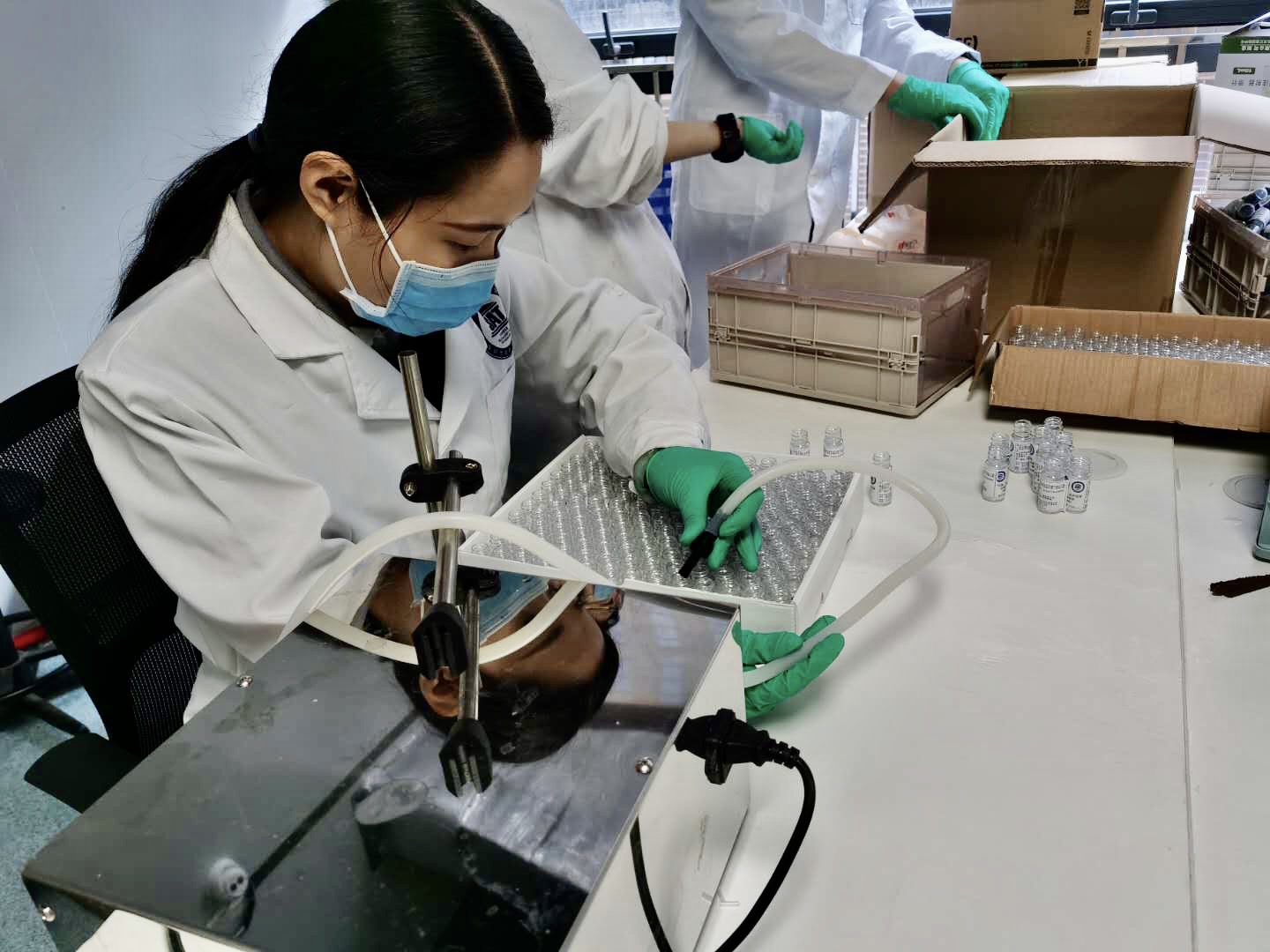 在生產人員不足的情況下,為滿足同濟、協和、中部戰(zhàn)區(qū)總醫(yī)院、武漢客廳方艙醫(yī)院等十幾家醫(yī)療機構提出的緊急需求,武漢先進院集合了部分湖北省外工作人員,與中科院深圳先進院材料界面研究中心團隊一道,開展緊鑼密鼓的制備工作,完成了第一批5000瓶納米噴霧劑生產,于2月25日順利送達武漢防控疫情一線。