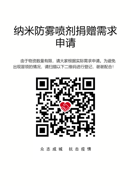 武漢先進院已開放線上捐贈登記通道,一天時間內收到湖北省內定點醫(yī)院、方艙醫(yī)院、援鄂醫(yī)療隊等50多家醫(yī)療機構醫(yī)護人員的領用需求。下一步,團隊決定提高產能,繼續(xù)向湖北省內定點醫(yī)院、方艙醫(yī)院、疫情防控機構等無償捐贈防霧劑。