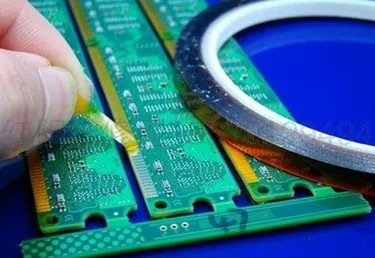由于有機(jī)硅壓敏膠具有較好的耐高溫破壞內(nèi)聚性能(短時(shí)間270℃),故經(jīng)過高溫處理之后,在撕除時(shí)不會(huì)殘留于被保護(hù)的表面;且具有較低的介電常數(shù)。以PI膜或美紋紙為基材,涂布固化有機(jī)硅壓敏膠,可以用在PCB線路板的波峰焊、回流焊與過錫爐工藝時(shí),起遮蔽保護(hù)金手指的作用,以及一些電子元件的絕緣。
