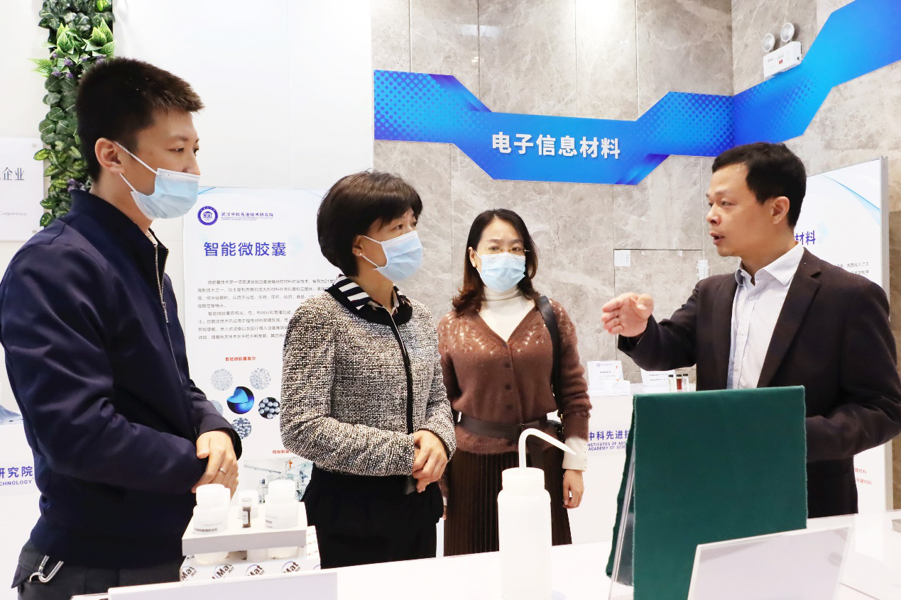 肖艷霞一行參觀了解了武漢先進院在等離子體設備、超表面材料涂層、黑磷、智能微膠囊、玄武巖纖維等科研項目的科學原理、產業化進程以及專利成果,并就部分科研項目的科學原理和應用場景詢問交流。