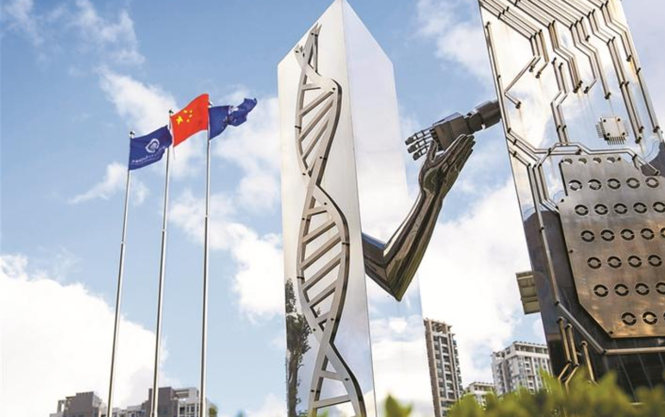 在深圳先進院位于西麗的院區內,有一座象征IT(信息技術)與BT(生物技術)融合的雕塑,象征著多學科交叉。