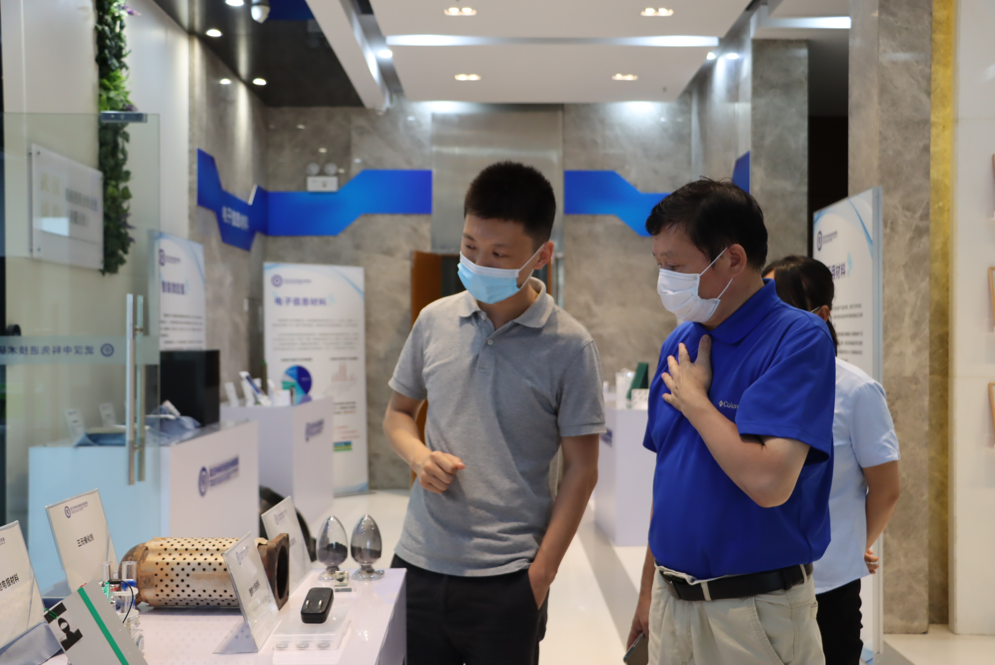 聘任儀式后,科研管理及成果轉(zhuǎn)化部部長賈寶泉和副部長吳燦陪同雷洪鈞參觀了武漢先進(jìn)院展廳。