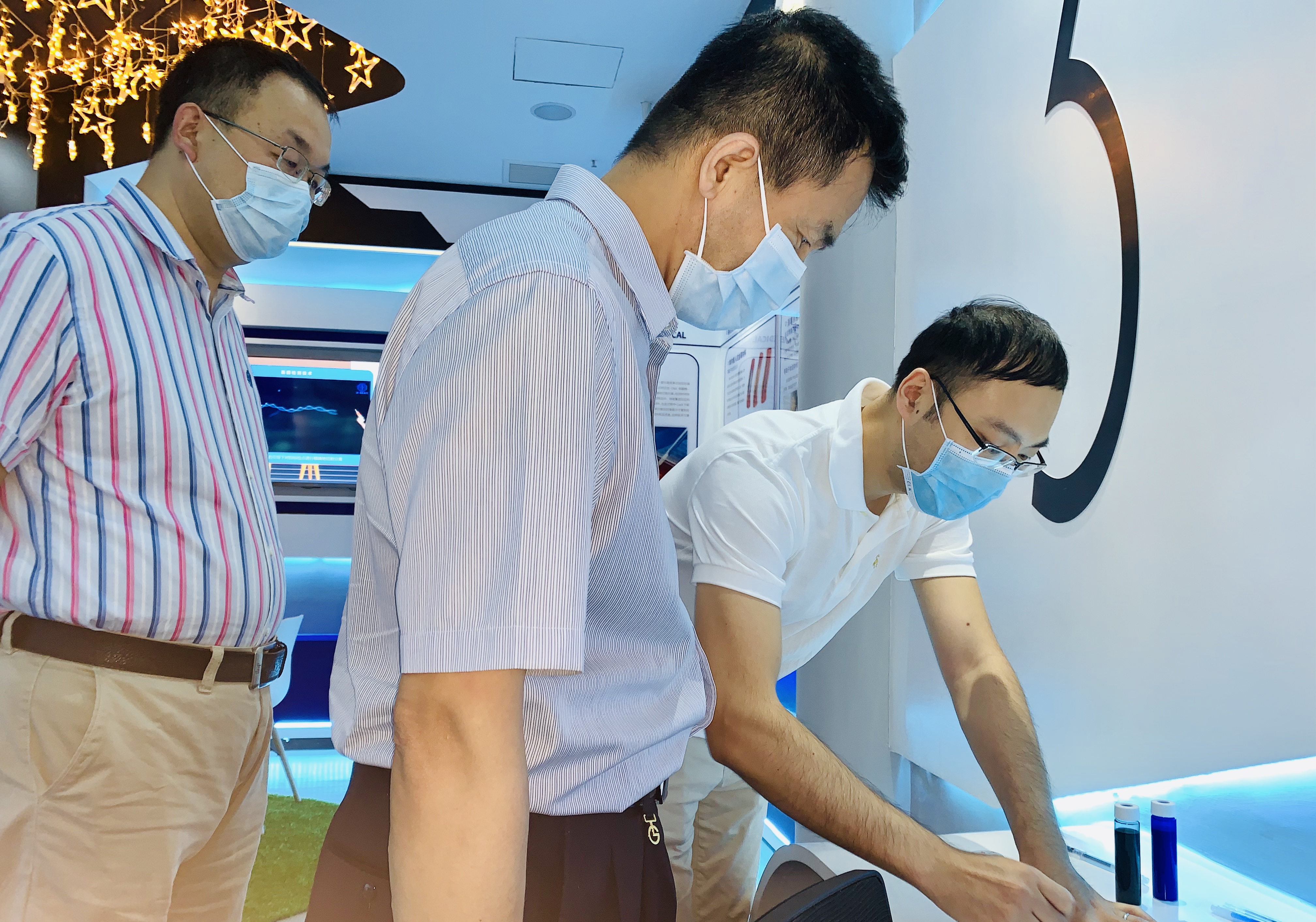 康翼鴻為王進、史建鵬介紹智能微膠囊產(chǎn)品