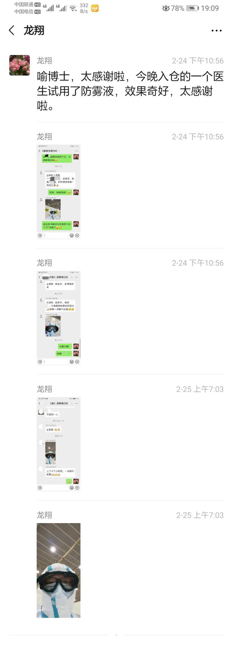 “喻博士,太感謝啦,今晚入艙的一個醫(yī)生試用了防霧噴劑,效果奇好,太感謝啦?!?月24日23點,武漢中科先進技術研究院院長喻學鋒收到又一條抗疫一線的感謝消息,來自深圳首批支援湖北醫(yī)療隊龍翔副主任醫(yī)師,他們已在一線戰(zhàn)斗了15天,和其它工作在一線的醫(yī)護人員一樣,都飽受護目鏡上霧水帶來的刁難。