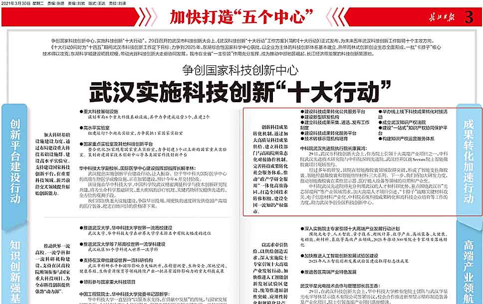 爭創國家科技創新中心,實施科技創新“十大行動”。29日召開的武漢市科技創新大會上,《武漢科技創新“十大行動”工作方案》(簡稱《十大行動》)正式發布,為未來五年武漢科技創新工作指明十個主攻方向。《十大行動》同時為“十四五”期間武漢市科技創新工作定下目標:力爭到2025年,東湖綜合性國家科學中心獲批,以企業為...