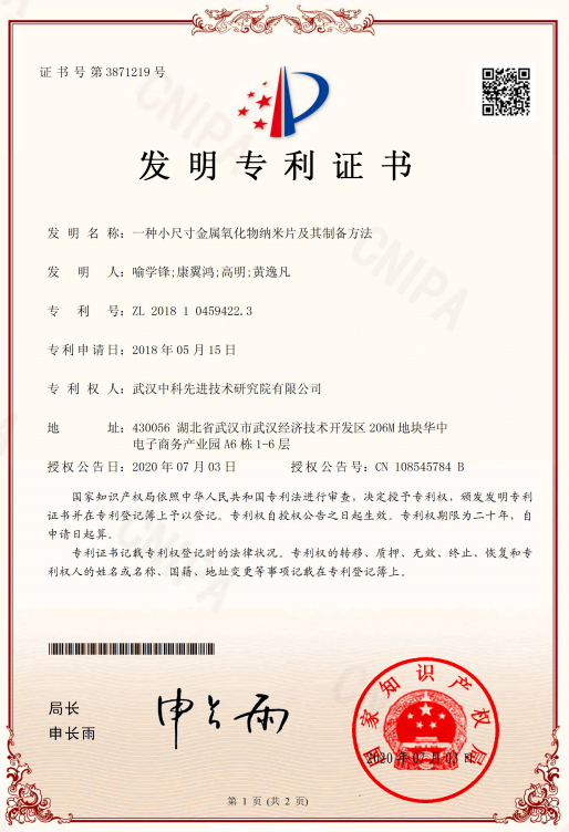 - 一種小尺寸金屬氧化物納米片及其制備方法